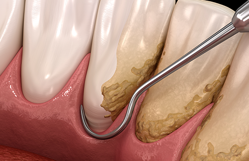 치아의 뿌리부위에 있는 치석과 염증 조직을 제거